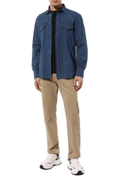 Джинсовую рубашку Western из чистого хлопка предварительно постирали, чтобы сформировать едва заметные разводы. У модели кроя regular fit предусмотрели крупные нагрудные карманы. Их клапаны, манжеты и само изделие застегиваются кнопками.
