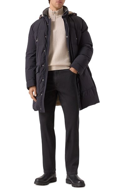 Джинсы Slim гармонично впишутся в базовый гардероб. Для пошива модели с пятью карманами использовали чуть эластичный хлопковый деним. Сзади на поясе – брендированный кожаный патч.