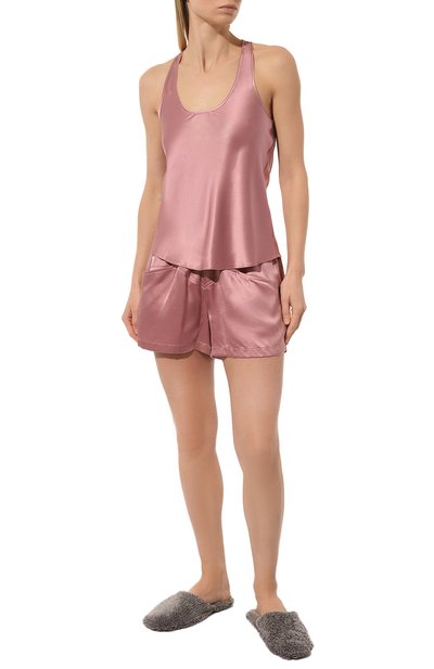 Шорты с завышенной линией талии и цельнокроеным поясом сшили из стрейчевого габардина на основе шерсти и полиэстера. Модель с двумя врезными карманами, складками спереди и вытачками сзади застегивается короткой молнией сбоку.