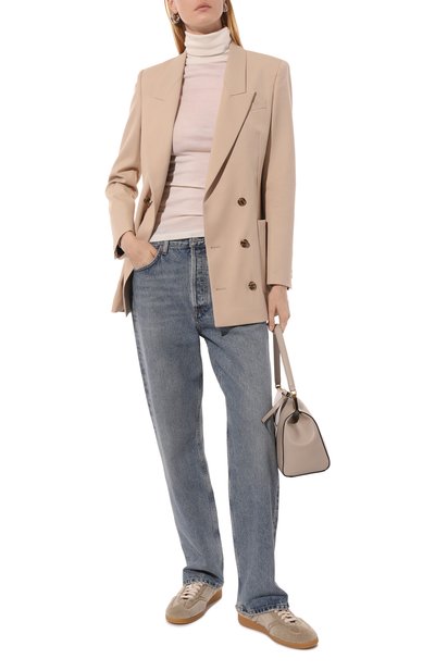 Двубортный жакет Virginia с заостренными лацканами и акцентированной линией плеч дополнили тремя карманами. Модель из полиэстерового атласа оттенка Bluch составит идеальный тандем с парными брюками или платьем-комбинацией.