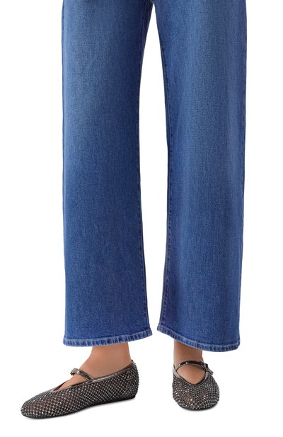 Балетки Gilda с отделкой из денима выполнили из полупрозрачной сетки с кристаллами. Модель на тонкой подошве застегивается ремешком с прямоугольной пряжкой.