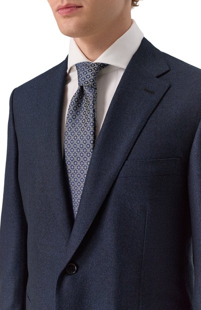 Галстук средней ширины выполнили из шелкового жаккарда с абстрактным паттерном. Сзади вручную проложили эластичный шов, поэтому аксессуар не перекручивается.