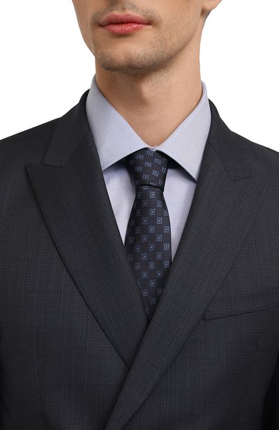 Галстук выполнили из шелка с жаккардовым геометрическим узором. Аксессуар органично впишется в деловой образ, а его длины хватит, чтобы завязать объемный узел.