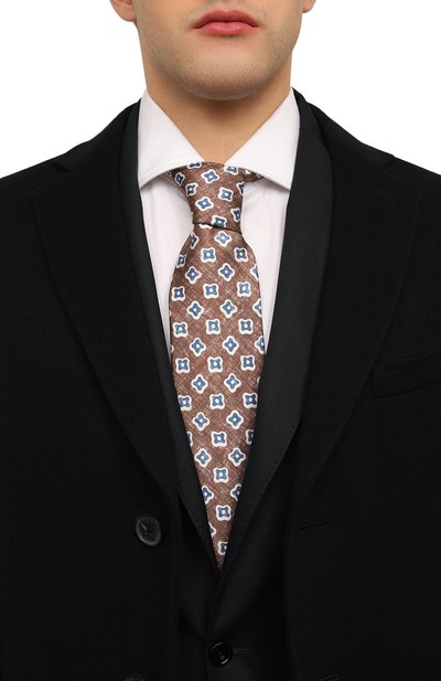 Галстук с графичным узором органично завершит образ с классическим костюмом и светлой, и темной гаммы. Аксессуар из шелкового жаккарда легко драпируется, хорошо держит узел и не перекручивается.