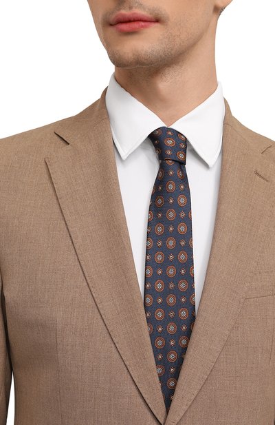 Для пошива галстука классической ширины использовали шелковый жаккард с цветочным орнаментом. Подкладка и эластичный шов сзади помогают аксессуару держать форму.
