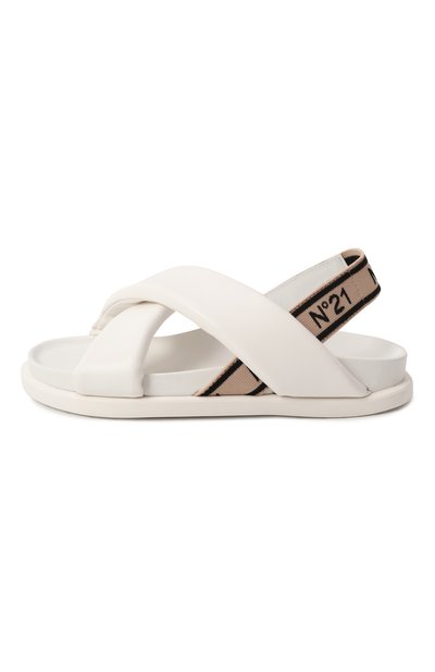 Сандалии с широкой подошвой выполнили из матового полиуретана, а формованную стельку — из мягкой кожи. Модель, украшенная логотипом марки, фиксируется на ноге ремешком-велкро.