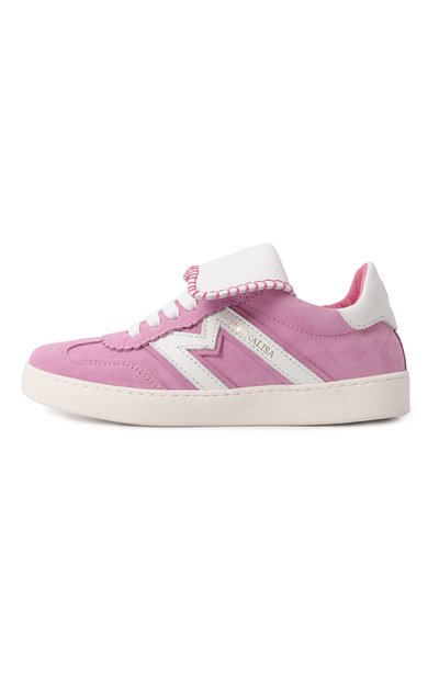 Кеды с перфорацией на союзке изготовили из кожи. Язычок, боковую панель и задник украсили брендированными принтами. Модель поставили на широкую двухцветную подошву.