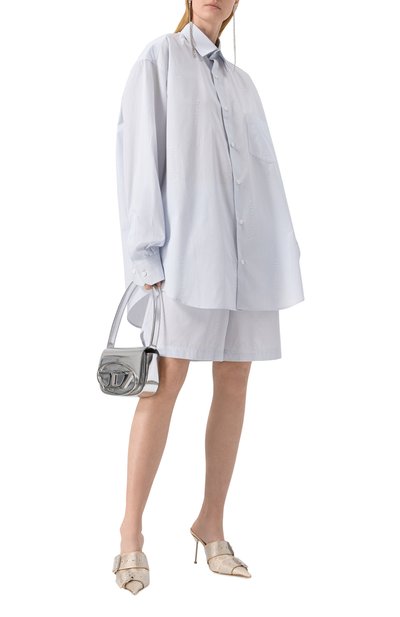 Шорты длиной чуть выше колена сшили из текстурного хлопкового трикотажа. Свободную модель с текстильным эластичным поясом дополнили широкими лампасами.