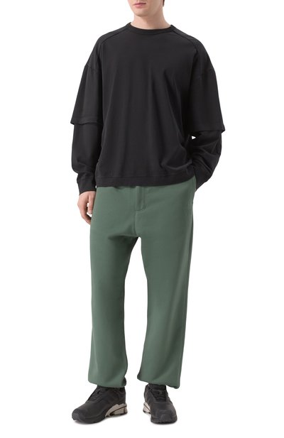 Джоггеры Dilbero выполнили из трикотажа френч терри, который изготовили из хлопка, выращенного с применением методов регенеративного земледелия. Модель с поясом-кулиской, одним задним и двумя боковыми карманами украсили спереди принтом Smoke Logo.