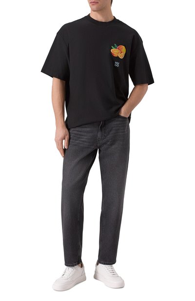 Спинку футболки кроя relaxed fit украсили логотипом и принтом Handle with care фирменного алого оттенка. Название марки и изображение сердца повторили спереди. Модель с круглой горловиной сшили из хлопкового джерси.
