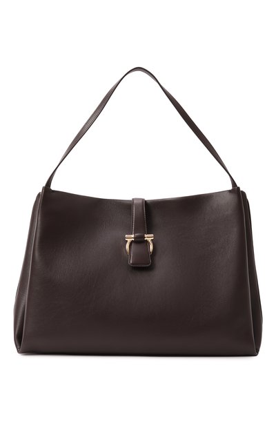 Сумку оттенка Oxblood сшили из мелкозернистой телячьей кожи, сформировав по бокам складки, напоминающие очертания лилии — символа Флоренции. Аксессуар закрывается ремешком с магнитной пряжкой Gancini, а внутренний карман застегивается молнией.