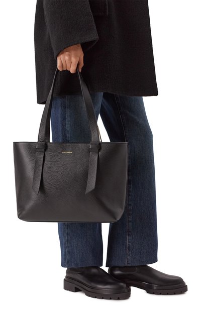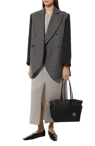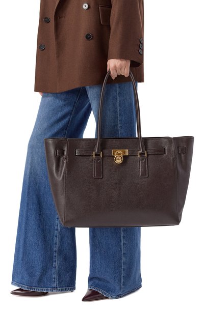 Для изготовления сумки MyEA с двумя ручками и текстильным брендированным ремнем использовали полимерный материал, напоминающий оленью кожу. Аксессуар с регулируемыми боковыми панелями на кнопках дополнили бр елоком с логотипом и косметичкой на молнии.