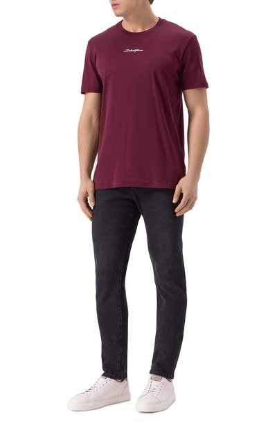Футболку из коллекции DNA выполнили из хлопкового джерси. Спереди модель украсили фирменной металлической пластиной с выгравированным логотипом бренда.