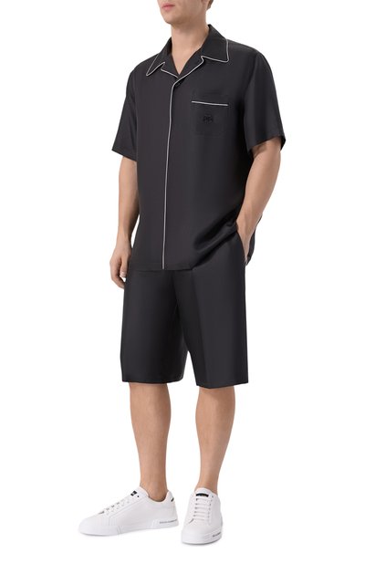 Рукава и нагрудный карман рубашки оттенка Sicily Black подчеркнули контрастным принтом Bandana, которому вторят полосы на воротнике «кент». Модель из коллекции DNA сшили из хлопкового поплина.