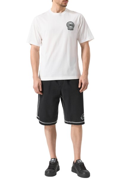 Хлоп ковые шорты длиной до колен вошли в коллекцию DNA. Модель с регулируемым поясом-кулиской дополнили двумя боковыми карманами и накладным задним, украшенным контрастными полосами и брендированным принтом Bandanna.