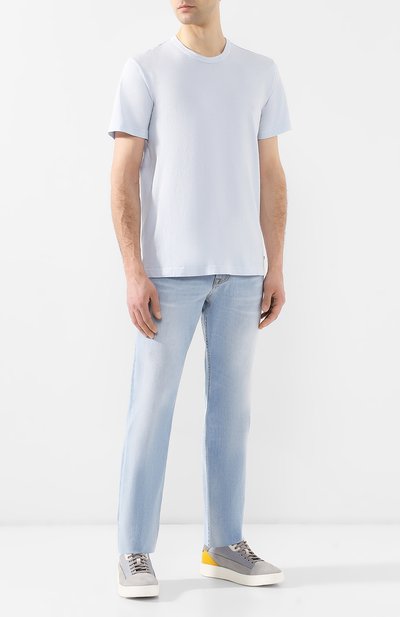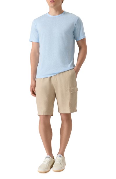 Футболка без декора сшита из тонкого меланжевого джерси на основе льна и хлопка. Эластичная модель прямого кроя станет основой летнего образа в разной цветовой гамме.