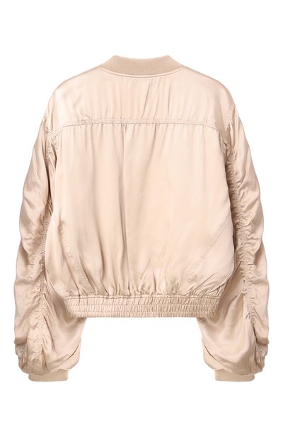 Бомбер из вискозного атласа с добавлением лиоцелла дополнили молнией, эластичным поясом, трикотажными манжетами и воротником. На левом нагрудном кармане с вышитой на клапане эмблемой Oval D разместили небольшой накладной.