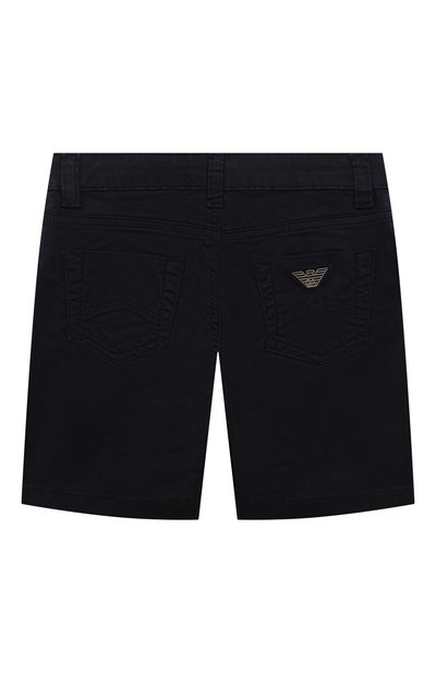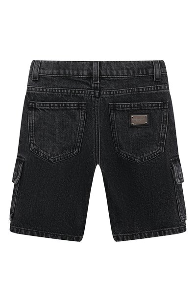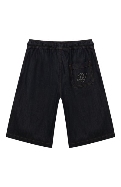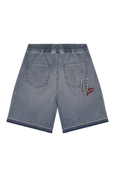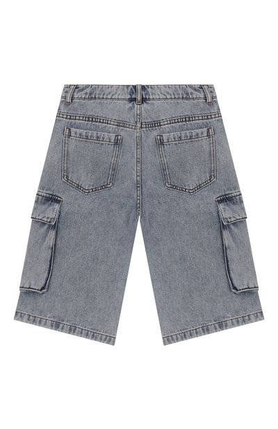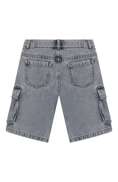Шорты с боковыми карманами и прорезными задними с пуговицей сшили из денима с полутонами. Модель с брендированной нашивкой дополнили на поясе двойными шлевками спереди и эластичной вставкой сзади.