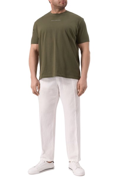 Футболку из хлопкового джерси украсили брендированным потертым принтом спереди. Модель с круглой горловиной и спущенной линией плеч органично впишется непринужденный повседневный образ.