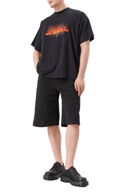 Шорты с эластичными вставками на поясе и пятью карманами, один из которых украшен тисненой надписью Icon, выполнены из денима. Модель с металлическими заклепками на стыках швов застегивается молнией и пуговицей.