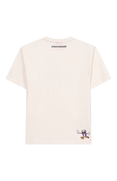 Футболку прямого кроя сшили из плотного хлопкового джерси. Изделие с круглым вырезом украсили спереди крупным принтом British Sailor и патчами с символикой марки.