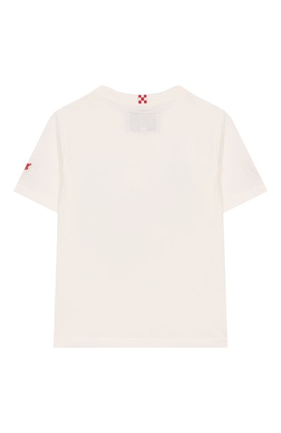 Потертый логотип марки на футболке дополнили фирменным принтом British Sailor и неровными сине-голубыми разводами. Модель с круглой горловиной в мелкий рубчик сшили из хлопкового джерси.