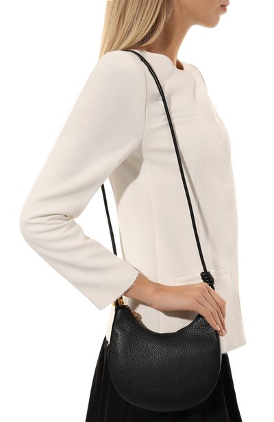 Сумку с короткой регулируемой ручкой выполнили из телячьей кожи. На передней панели расположили логотип, а сбоку аксессуар украсили съемным брендированным брелоком. Внутри — карман на молнии.
