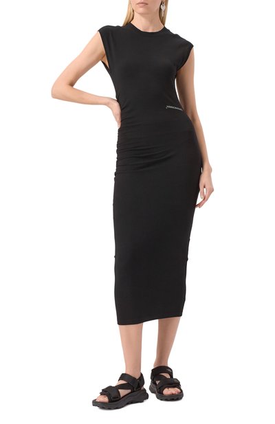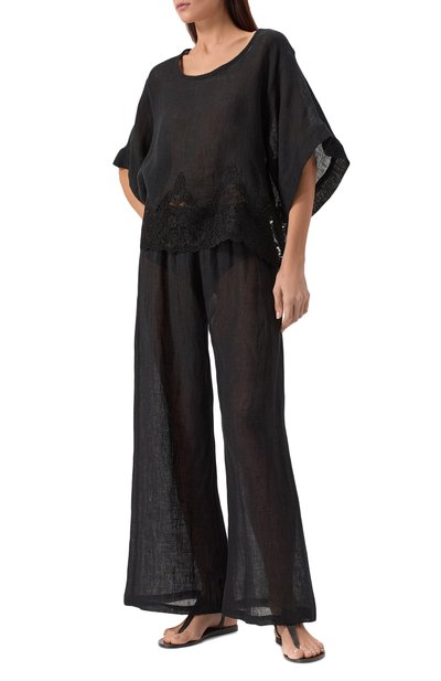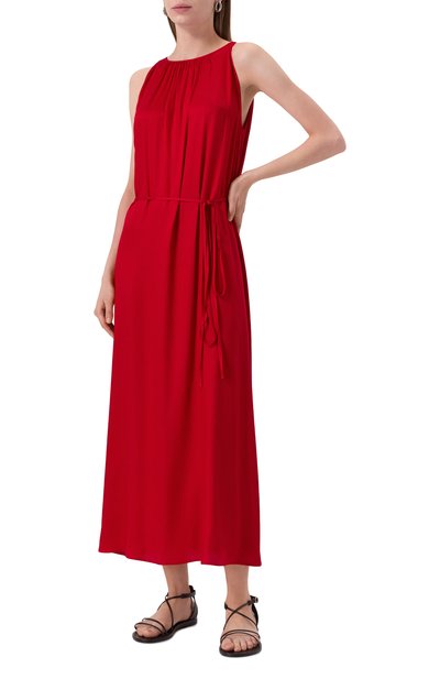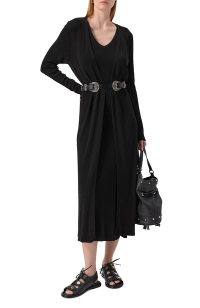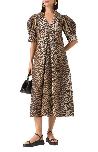 Сандалии со скошенным мысом, регулируемым ремешком на заднике и тонкими перемычками выполнили из матовой кожи. Союзку украсили объемной аппликацией-цветком.