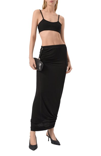 Туфли с асимметричным ремешком, дополненным эластичной вставкой, сшили из зернистой кожи. Модель поставили на составную скульптурную танкетку средней высоты.