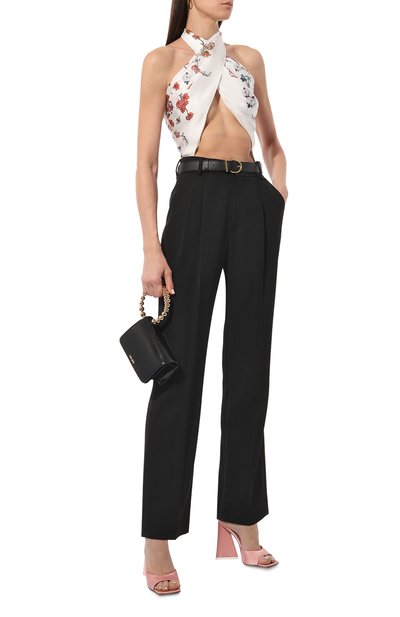 Мюли со скошенным квадратным мысом и двумя широкими перемычками выполнили из мелкозернистой кожи. Ей же обтянули стельку и расклешенный устойчивый каблук.