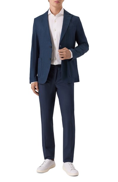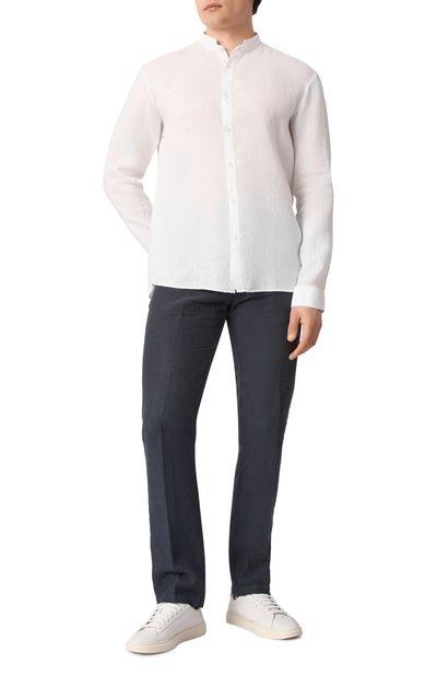 Рубашку P-Hank с закругленными манжетами и низом выполнили из меланжевого хлопкового пике. Модель кроя Slim fit одинаково гармонично смотрится в комплекте как с футболкой, так и с пиджаком.