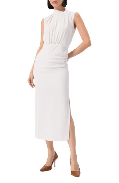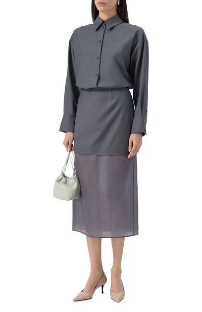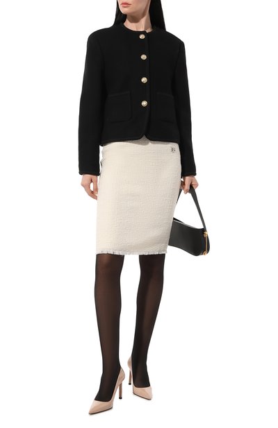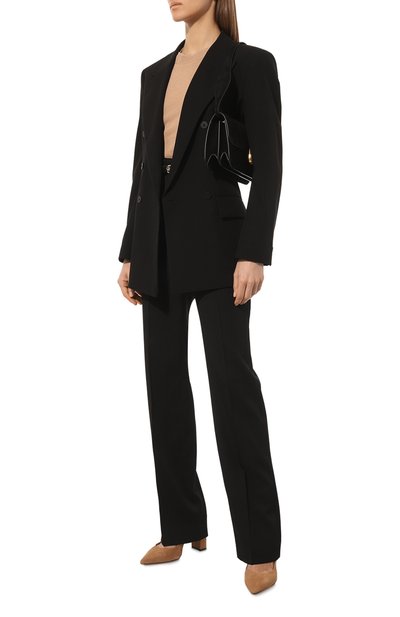 Туфли Janet с зауженным мысом сшили из гладкой наппы, а для внутренней отделки использовали овечью кожу. Задник дополнили нашивкой с круглой брендированной заклепкой.
