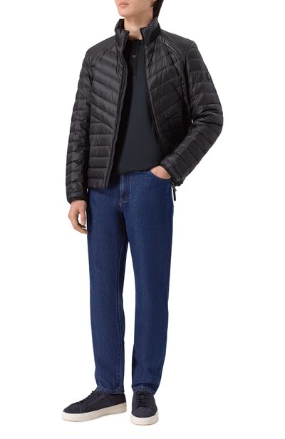 Поло с длинными рукавами сшито из хлопкового пике, а воротник подчеркнут контрастными полосками. Модель прямого кроя украшена прорезиненным алым логотипом марки спереди.