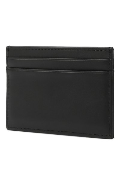 Футляр с четырьмя слотами для кредитных карт и карманом для чеков сшит из комбинации тисненого и гладкого полимерного материала под кожу. Небольшой аксессуар украшен спереди металлическим логотипом бренда.