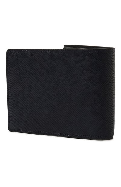 Портмоне двойного сложения изготовили из регенерированной кожи. Переднюю панель дополнили логотипом бренда. Внутри — два отсека для чеков, отделение для купюр, карман с клапаном и четыре карточных слота, один из которых украсили петлей с фирменным триколором.