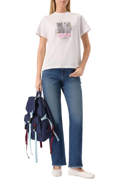 Футболку украсили спереди визуально объемным фотопринтом с логотипом марки. Модель из хлопкового джерси гармонично дополнит повседневный гардероб.