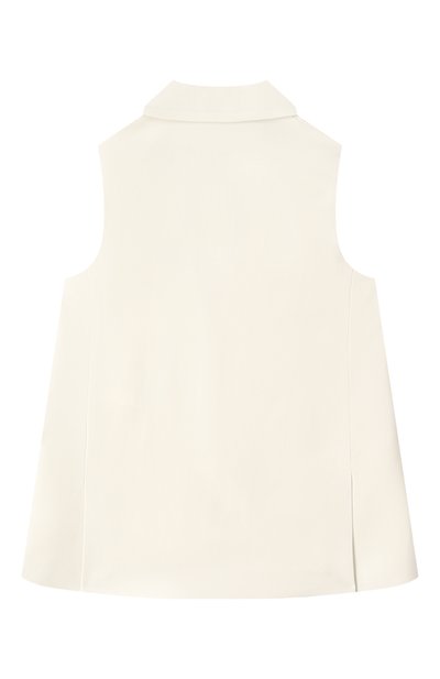Жилет сшили из стрейчевой костюмной ткани на основе полиэстера и шерсти. Модель с фирменной строчкой на спинке дополнили боковыми карманами с клапанами, над одним из которых – вышитый нитью в тон числовой код.