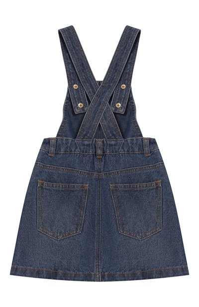 Джинсовый комбинезон из слегка эластичного хлопка с эффектом делаве дополнили тремя накладными карманами. Пояс со шлевками украсили сзади патчем с эмблемой бренда.