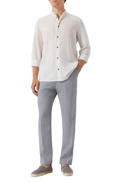 Эспадрильи Joel с петлей и вышитой полосой на заднике изготовили из канваса, который соткали из органического хлопка. Модель на прорезиненной джутовой подошве дополнили эластичными боковыми вставками.