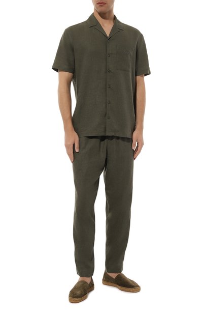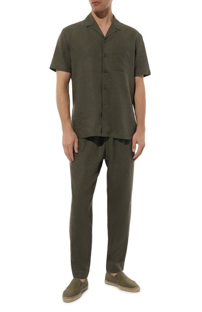 Эспадрильи Polo на прорезиненной джутовой подошве сшили из воловьей кожи оттенка Olive. Мягкий замшевый задник можно сложить, и носить модель как сабо.