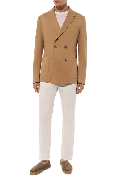 Эспадрильи Pablo с полосатой петлей на заднике сшили из органического хлопка. Внутри пару укрепили овечьей замшей, а джутовую подошву сделали прочнее накладкой из вулканизированной резины.