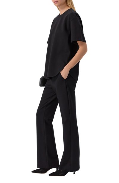 Союзку мюлей выполнили из двух отрезов гладкой кожи, обтянув одним из них высокий устойчивый каблук. Границу между деталями декорировали двумя стежками в тон, а стельку – серебристым логотипом марки.