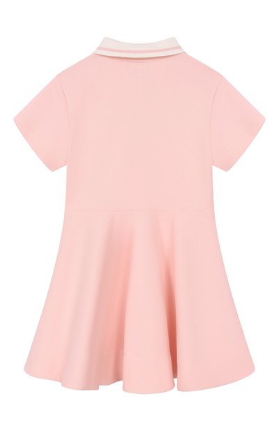 Приталенное платье с рукавами-фонариками и двумя накладными карманами украсили бантом в тон отложного воротника. Модель с декором из кристаллов, бусин и брендированных пуговиц застегивается потайными молнией и крючком сзади.