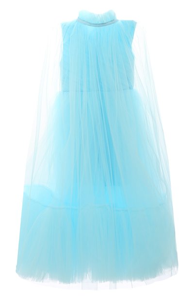 Расклешенную юбку с подкладом из хлопка выполнили из органзы с цветочной вышивкой в тон. Широкий пояс украсили спереди накладкой-эмблемой бренда.
