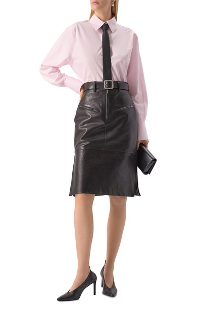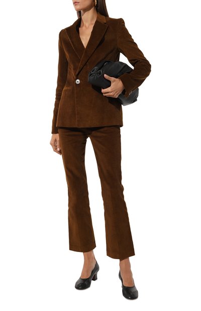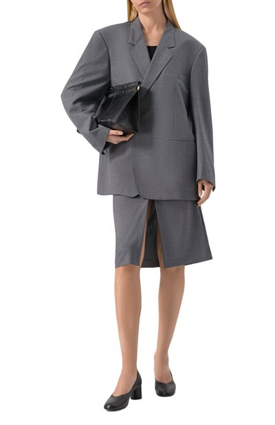 Туфли с круглым мысом и высокой союзкой сшили из телячьей кожи. Модель с эластичной вставкой сбоку поставили на устойчивый каблук в форме усеченного цилиндра.
