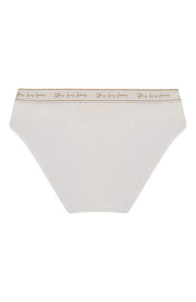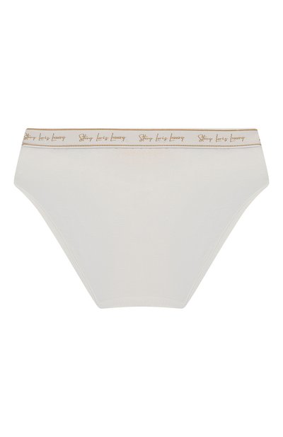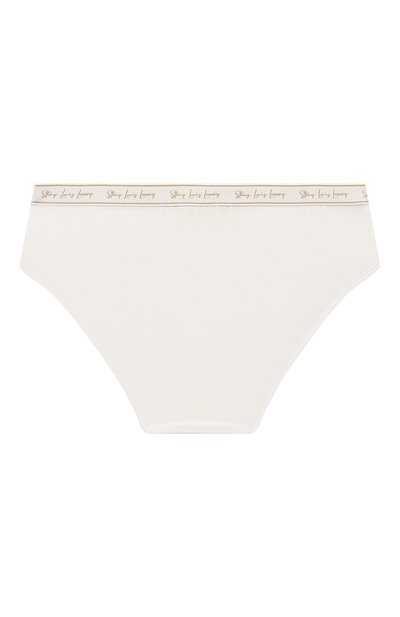 Слипы сшили из эластичного рифленого трикотажа на основе модала. Трусы украсили узкой кружевной отделкой и небольшим бантом с кристаллом спереди.