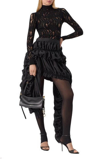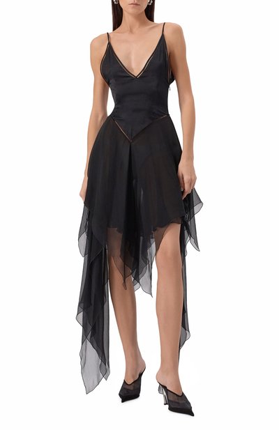 Мюли Juno с зауженным квадратным мысом сшили из полупрозрачной сетки. Подошву, фигурную шпильку и брендированную стельку выполнили из гладкой матовой кожи.