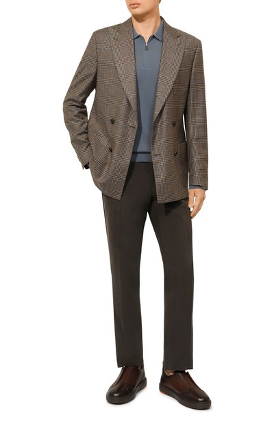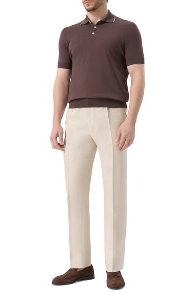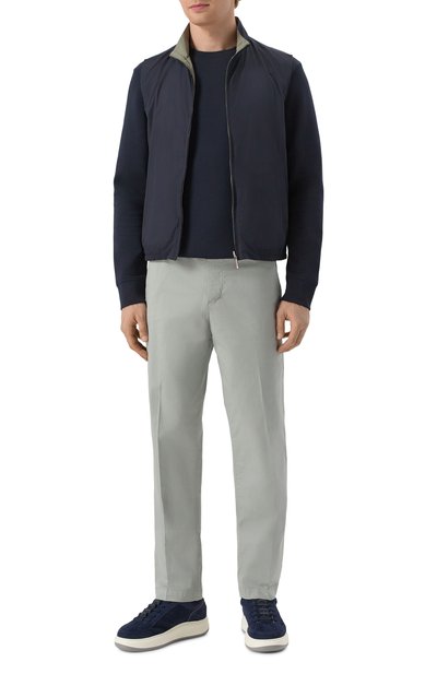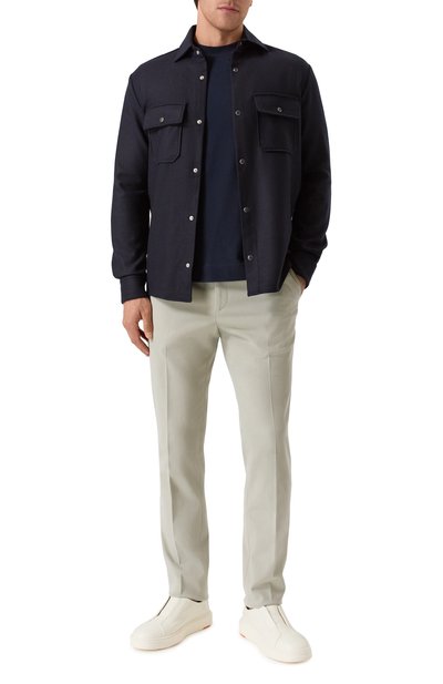 Брюки со стрелками одинаково хорошо сочетаются и со светлой, и с темной одеждой. Модель с четырьмя карманами сшили из стрейчевого хлопкового твила.