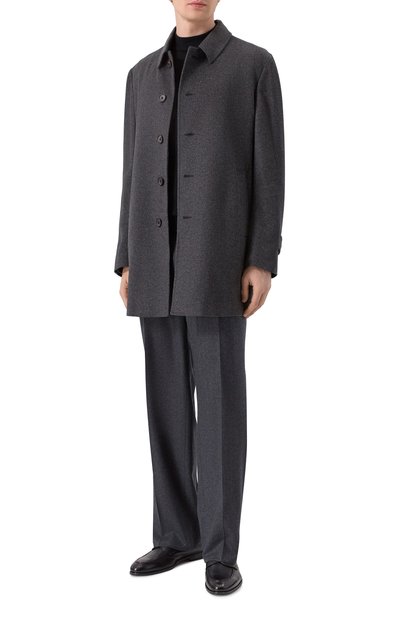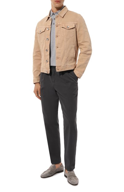 Для пошива прямых брюк со стрелками использовали хлопок с небольшим добавлением эластана. Модель дополнили парой боковых и двумя задними карманами.