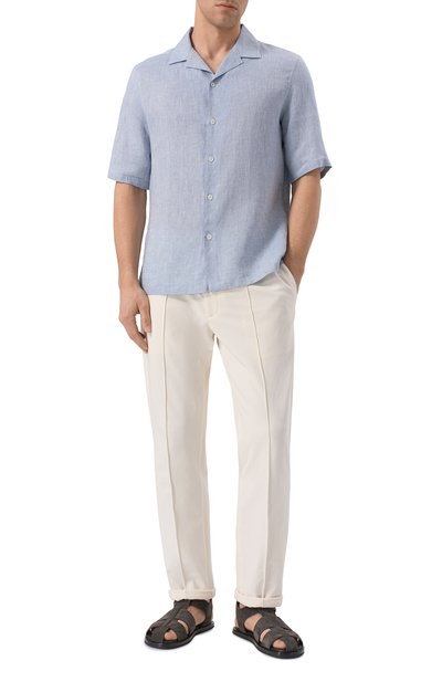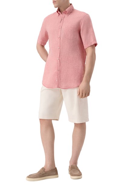 Рубашка кроя Easy гармонично впишется в летние casual-образы. Для пошива модели с перламутровыми пуговицами использовали меланжевую ткань из чистого льна.